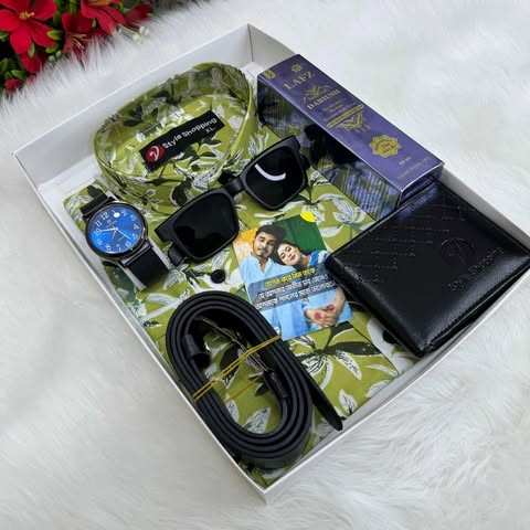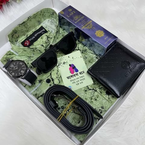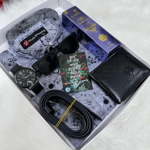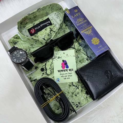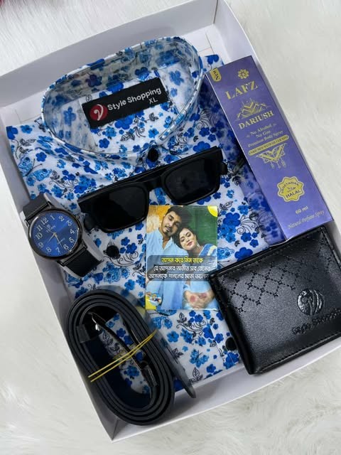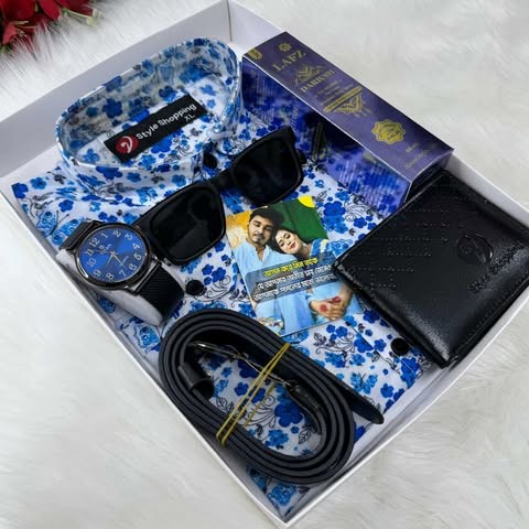 বেস্ট কোয়ালিটি প্রোডাক্ট ফুল শার্ট কম্বো প্যাকেজ ১/শার্ট ২/ঘড়ি ৩/মানিব্যাগ ৪/পারফিউম ৫/সানগ্লাস ৬/বেল্ট ৭/গিফট কার্ড ৮/ব্ক্স