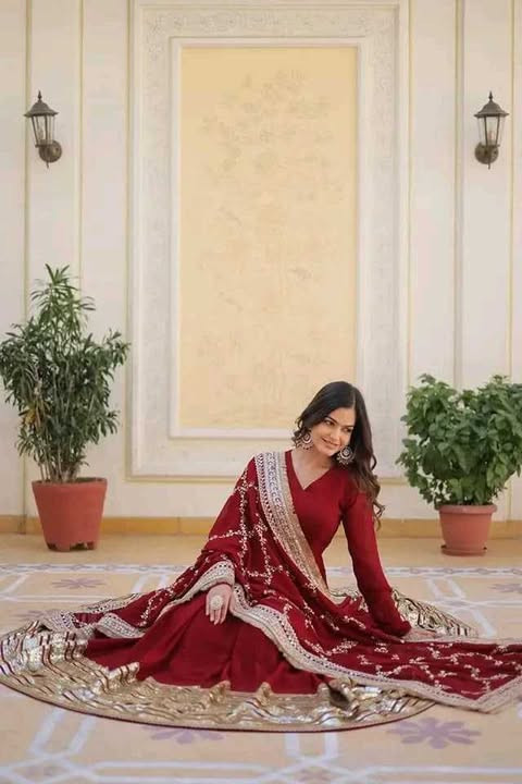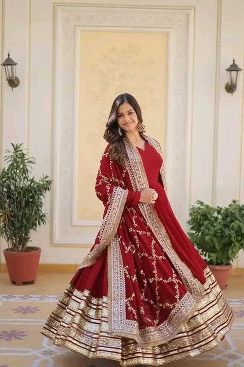 gown :- fabric & work:- faux blooming with embroidery zari sequins-work