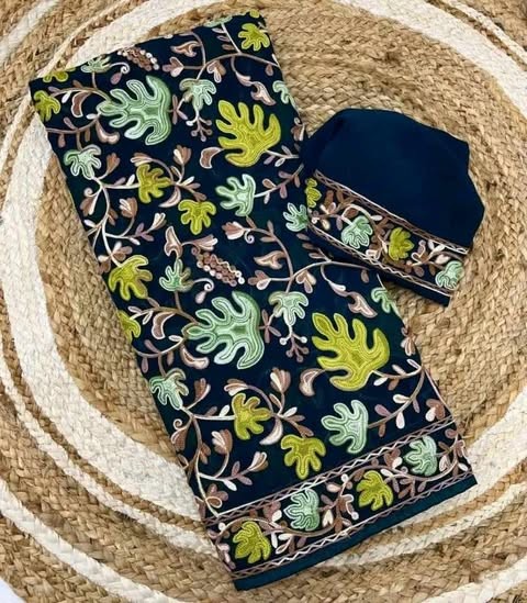 Soft Georgette With Beutiful Kasmir Multi Colour Work all over Saree