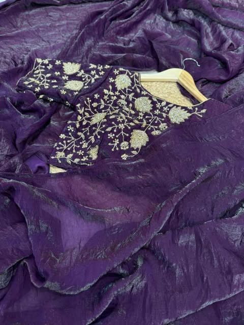 Blouse :- Stardust Satin Silk Heavy HandWork Blouse (1 Mtr Unstich)