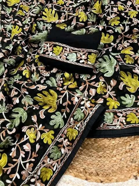 Soft Georgette With Beutiful Kasmir Multi Colour Work all over Saree